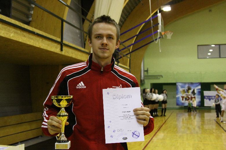 Pildil on Janis Selge esimese Serviti ridades võidetud tähtsa trofeega, mõned päevad enne jõule saadud Eesti karikavõistluste autasuga.